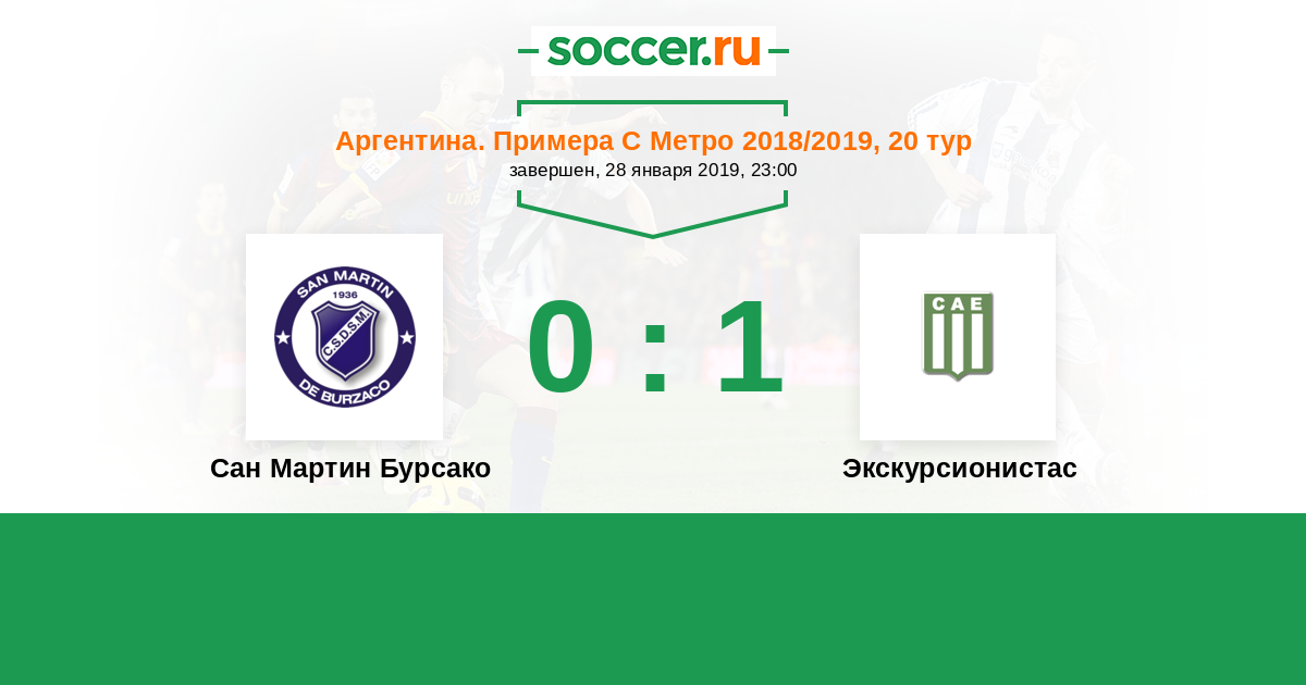 Аргентина. Примера С Метро 22.02.2018 Сан Мартин Бурсако Логотип футбольный клуб Сан Мартин Бурсако 2:1 Логотип футбольный клуб Экскурсионистас (Буэнос-Айрес) Экскурсионистас