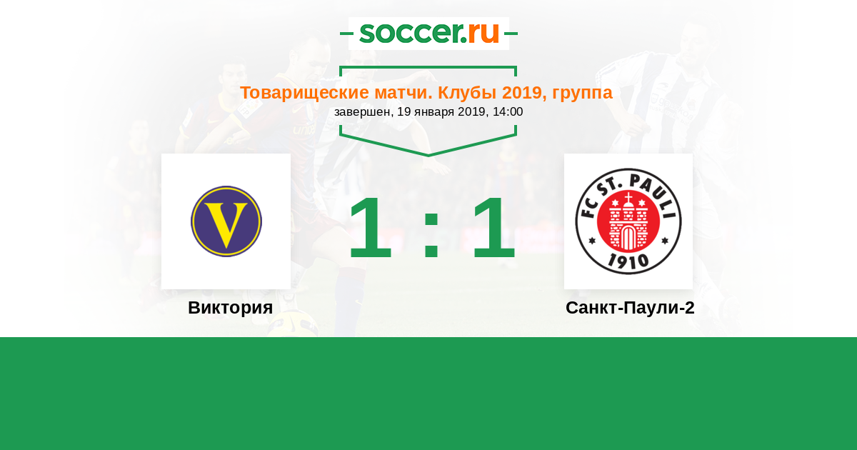 Товарищеские матчи. Клубы 07.01.2018 Санкт-Паули-2 Логотип футбольный клуб Санкт-Паули-2 (Гамбург) 3:0 Логотип футбольный клуб Бармбек-Уленхорст (Гамбург) Бармбек-Уленхорст