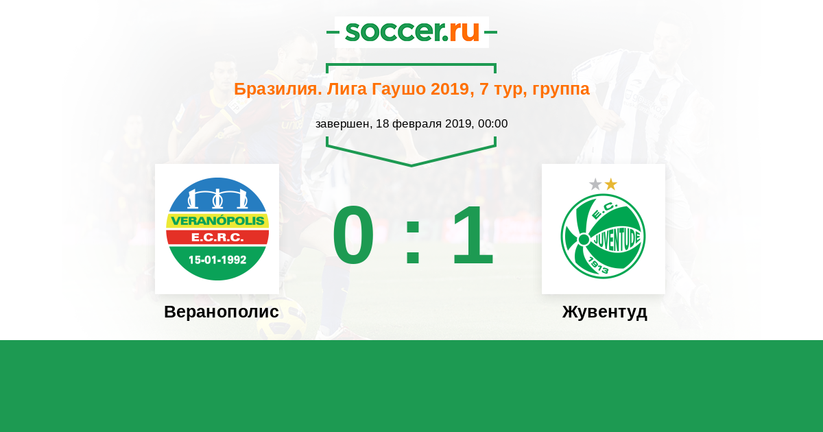 Бразилия. Лига Гаушо 01.03.2014 Веранополис Логотип футбольный клуб Веранополис 1:1 Логотип футбольный клуб Жувентуд (Кашиас-ду-Сул) Жувентуд