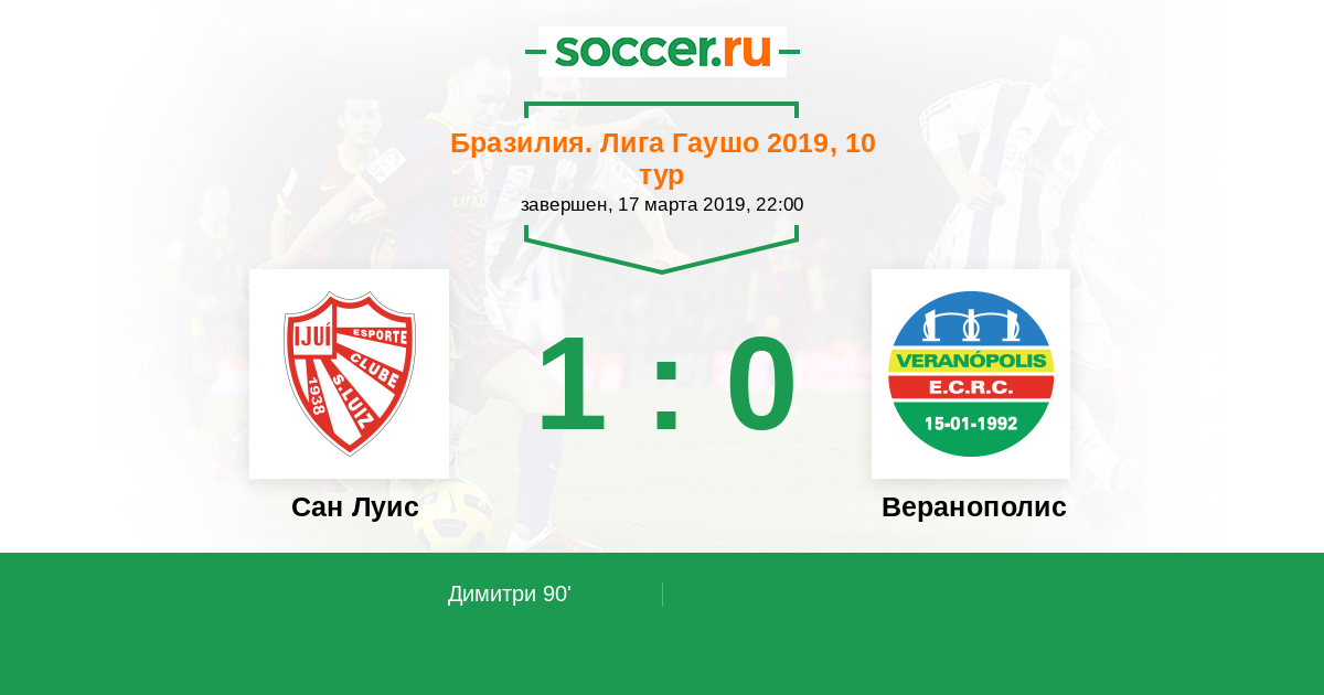 Протокол матча Сан Луис против Веранополис