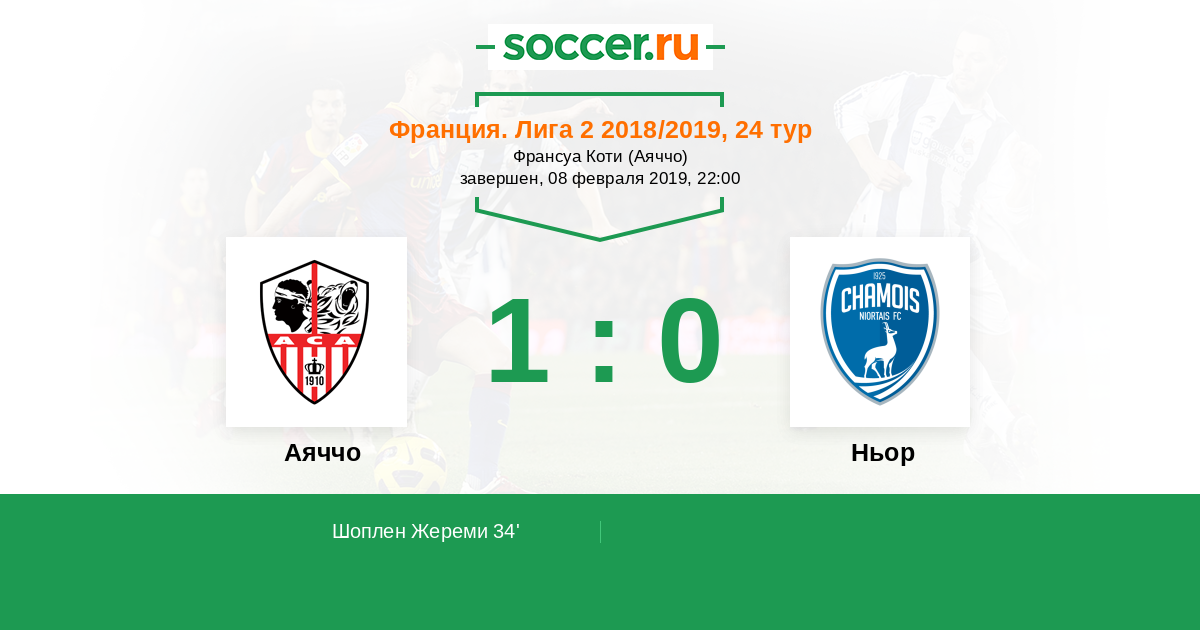 Протокол матча Аяччо против Ньор