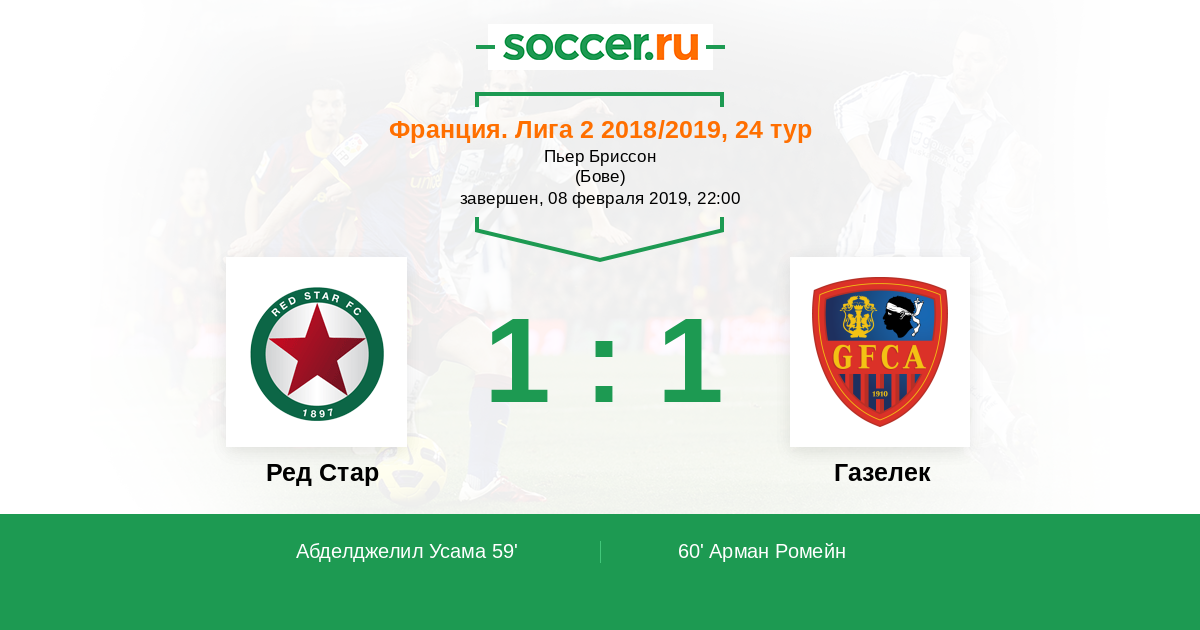 Протокол матча Ред Стар против Газелек