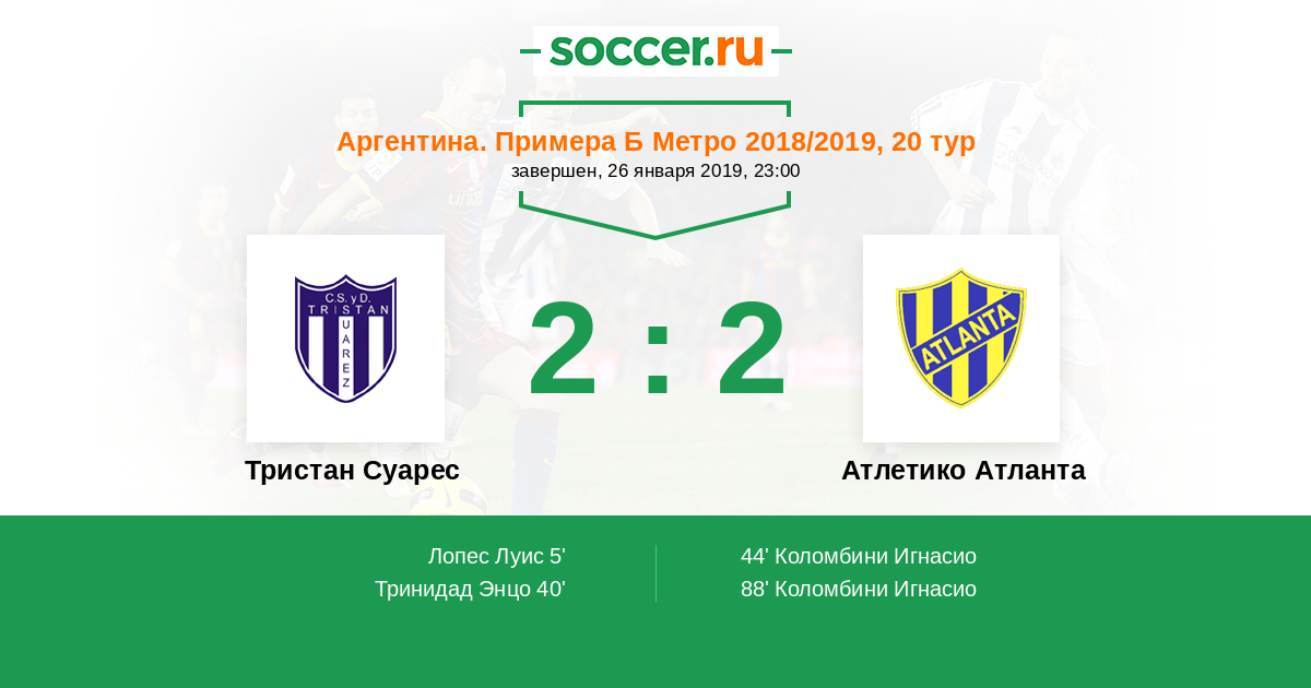 Протокол матча Тристан Суарес против Атлетико Атланта