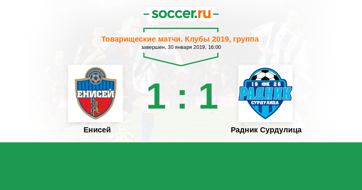 Новости матча Енисей против Радник Сурдулица