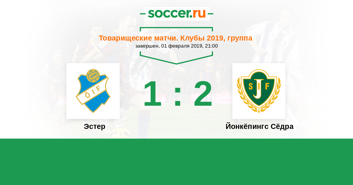 Товарищеские матчи. Клубы 26.02.2017 Эстер Логотип футбольный клуб Эстер (Векше) 1:0 Логотип футбольный клуб Йонкёпингс Сёдра Йонкёпингс Сёдра