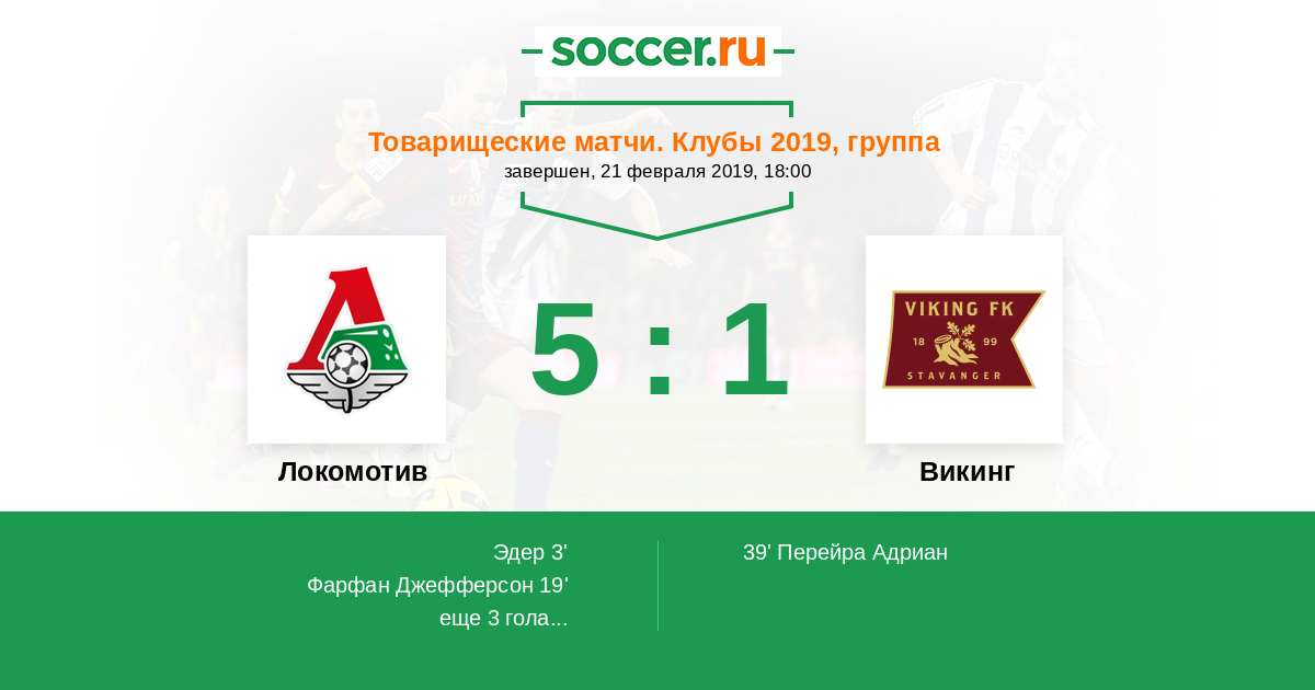 Протокол матча Локомотив против Викинг