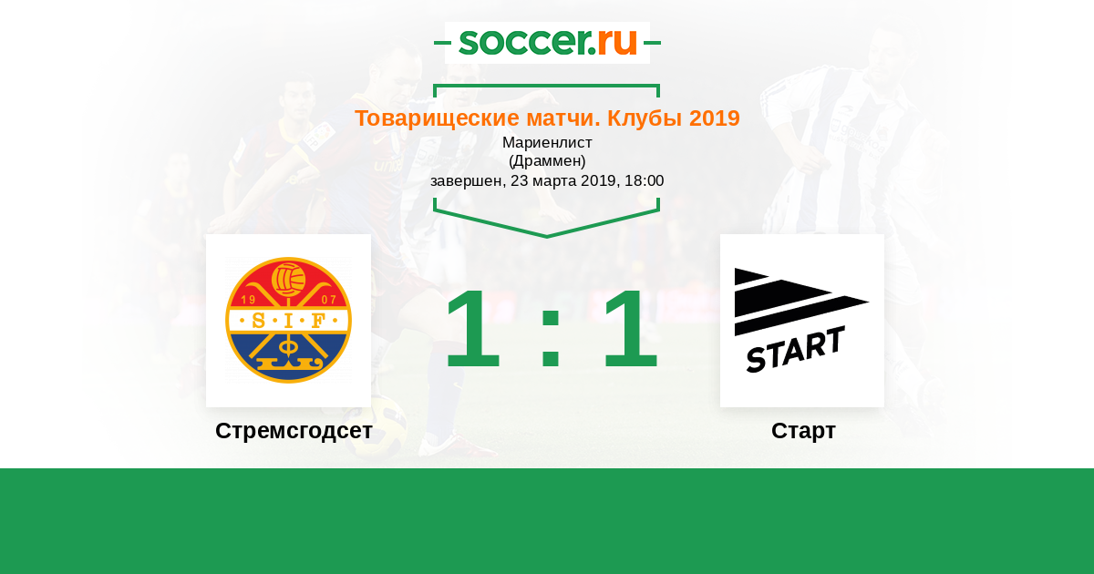 Норвегия. Высшая лига 30.03.2014 Стремсгодсет Логотип футбольный клуб Стремсгодсет (Драммен) 4:2 Логотип футбольный клуб Старт (Кристиансанд) Старт