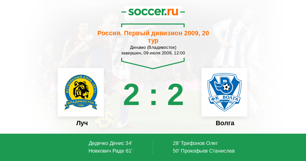 Протокол матча Луч против Волга
