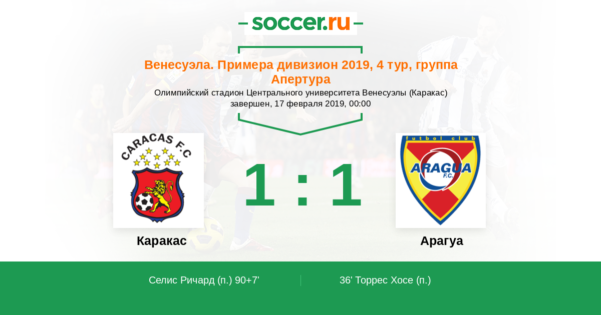 Протокол матча Каракас против Арагуа