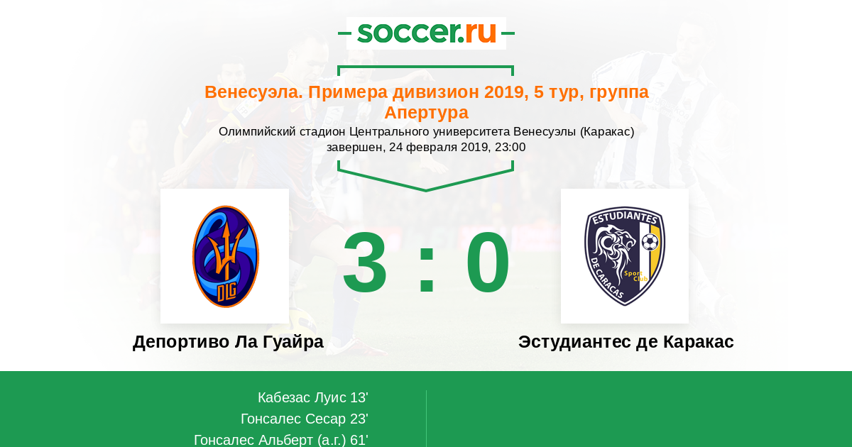 Протокол матча Депортиво Ла Гуайра против Эстудиантес де Каракас