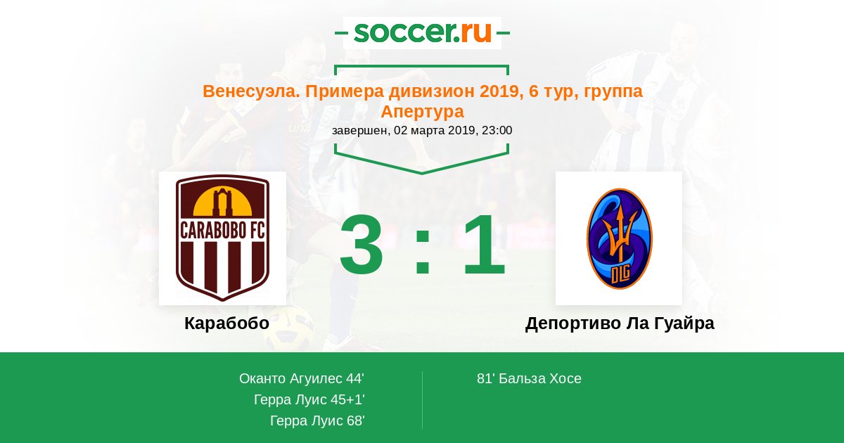 Протокол матча Карабобо против Депортиво Ла Гуайра
