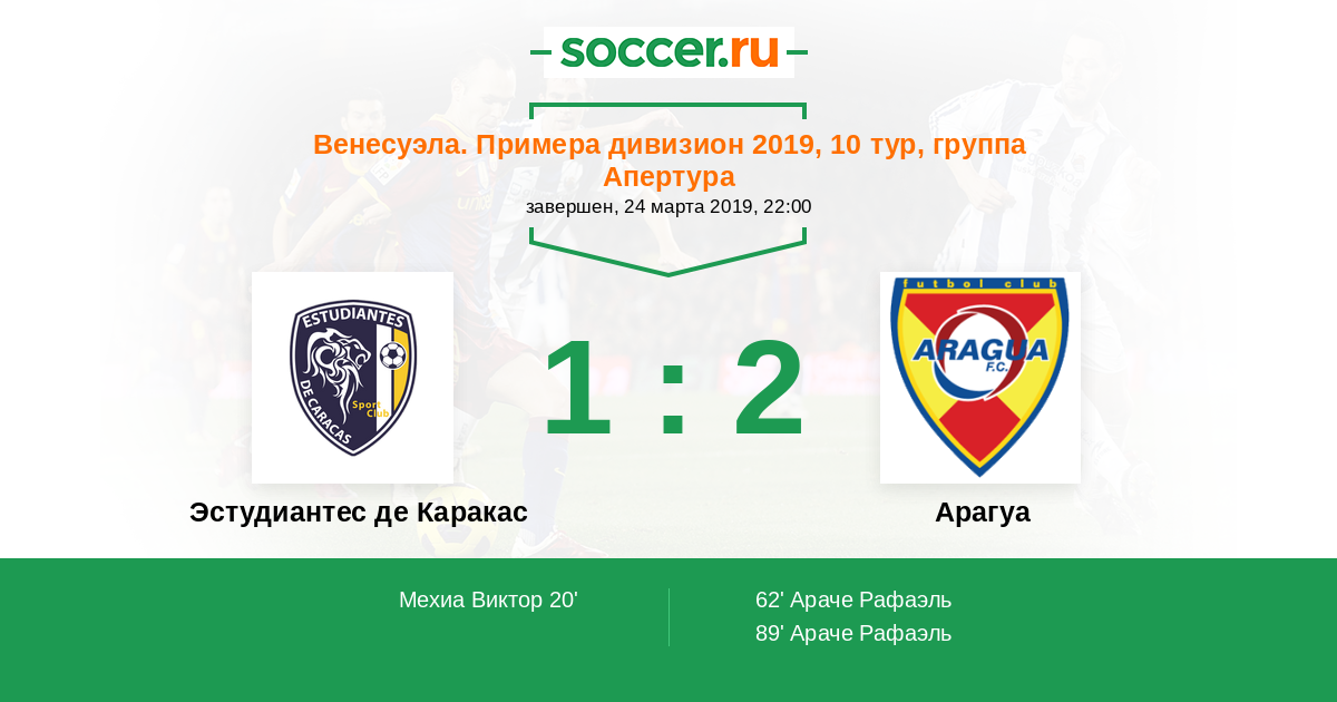 Протокол матча Эстудиантес де Каракас против Арагуа