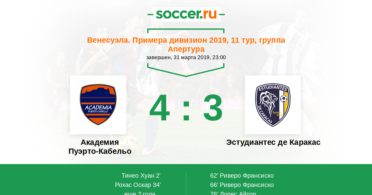 66' (2:2) Риверо Франсиско (24)