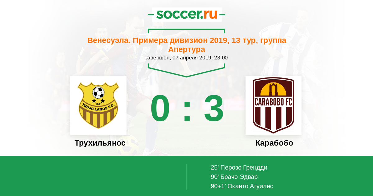Протокол матча Трухильянос против Карабобо