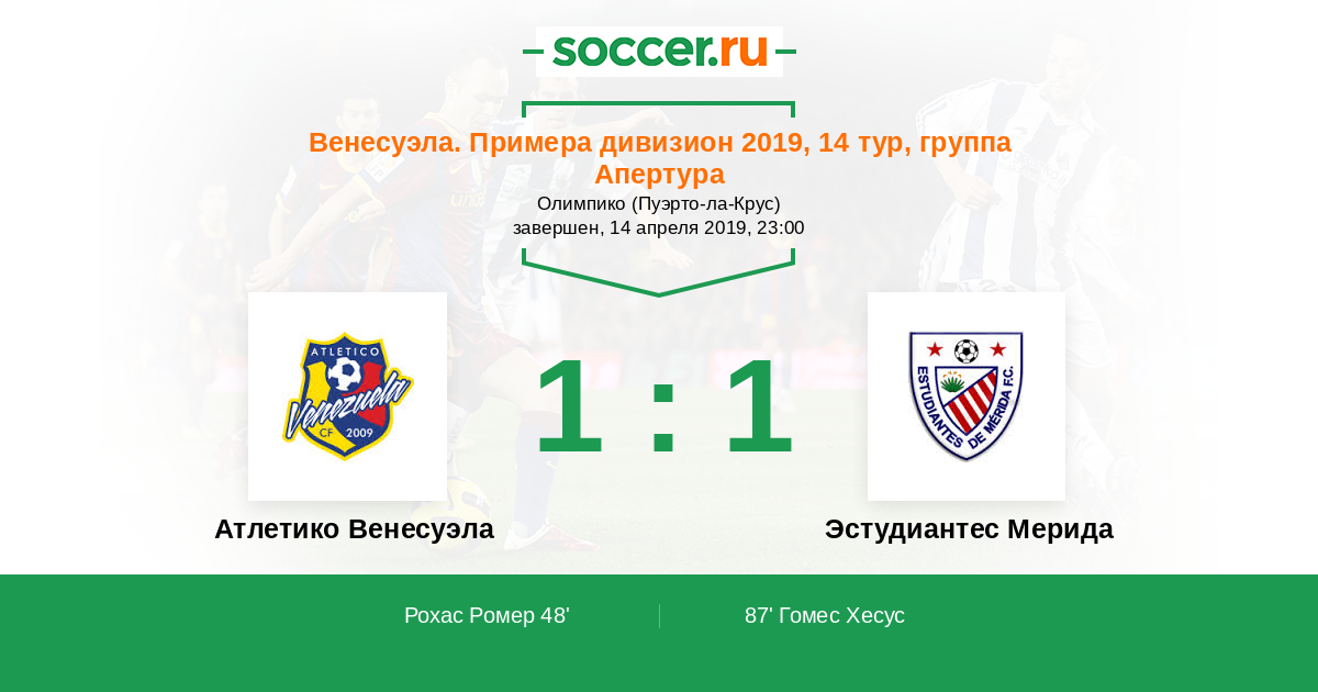 Протокол матча Атлетико Венесуэла против Эстудиантес Мерида