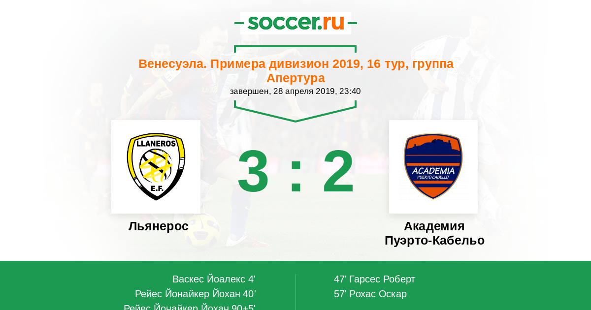 Протокол матча Льянерос против Пуэрто-Кабельо