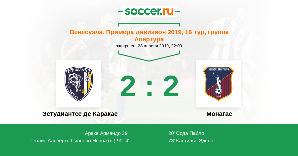 Протокол матча Эстудиантес де Каракас против Монагас