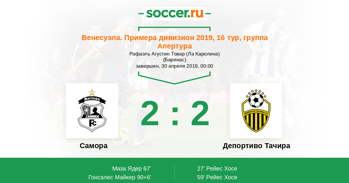 Протокол матча Замора против Депортиво Тачира