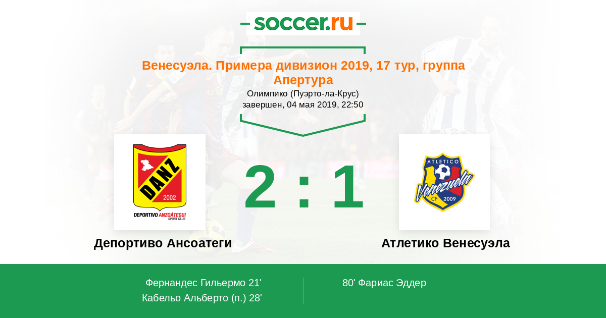 Протокол матча Депортиво Ансоатеги против Атлетико Венесуэла