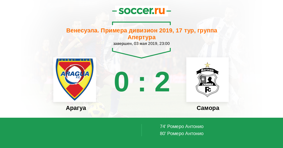 Протокол матча Арагуа против Замора