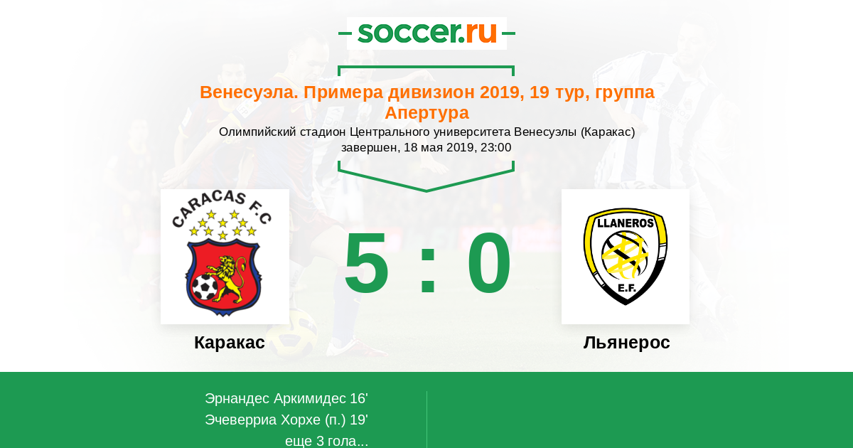 Протокол матча Каракас против Льянерос