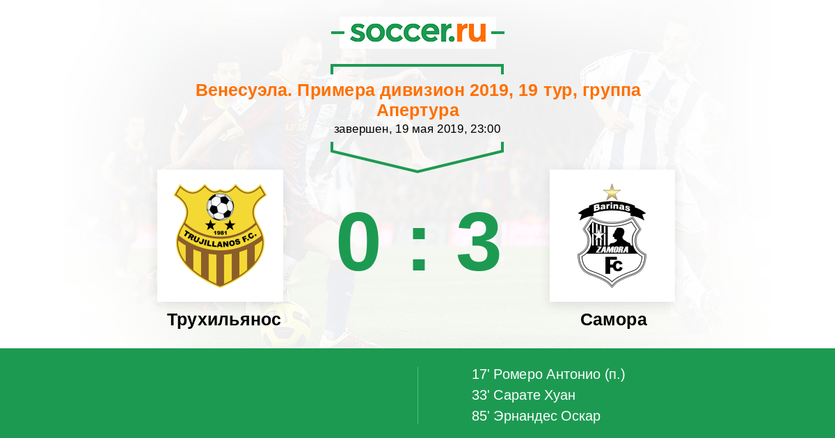 Протокол матча Трухильянос против Замора