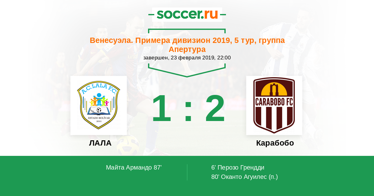 Протокол матча ЛАЛА против Карабобо