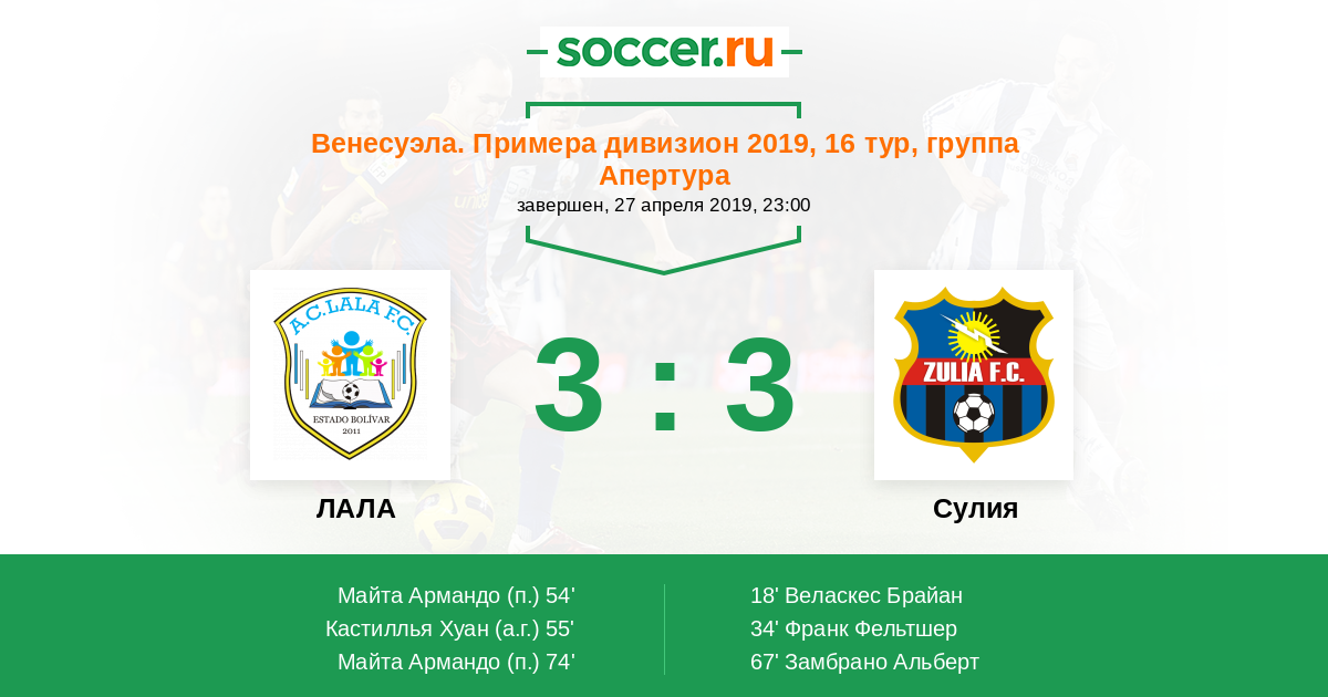 Протокол матча ЛАЛА против Сулия