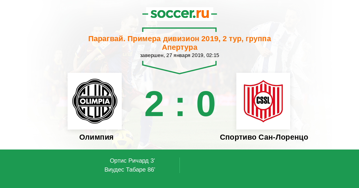 Протокол матча Олимпия против Спортиво Сан-Лоренцо