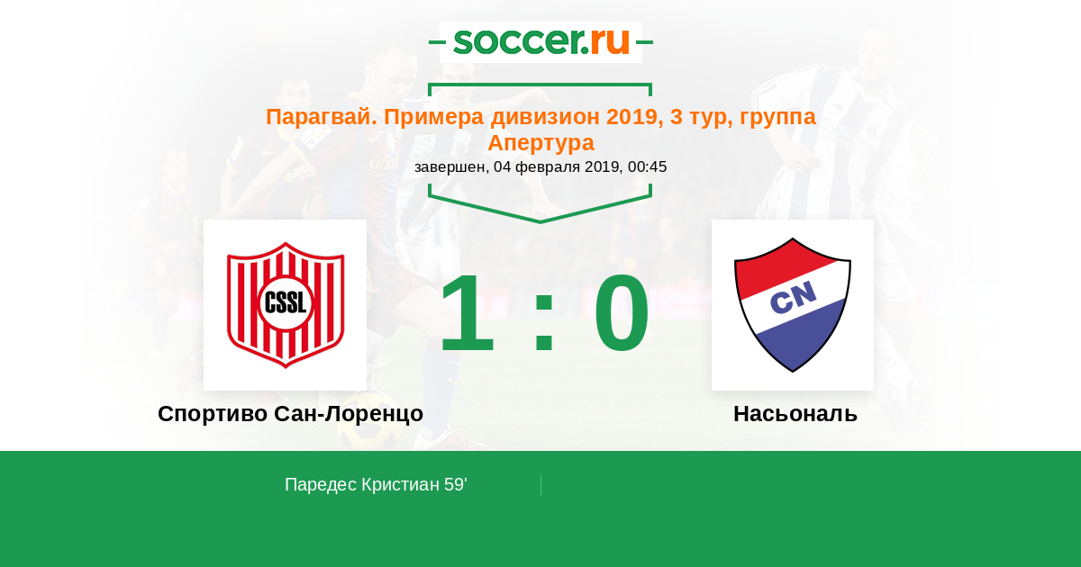 Протокол матча Спортиво Сан-Лоренцо против Насьональ