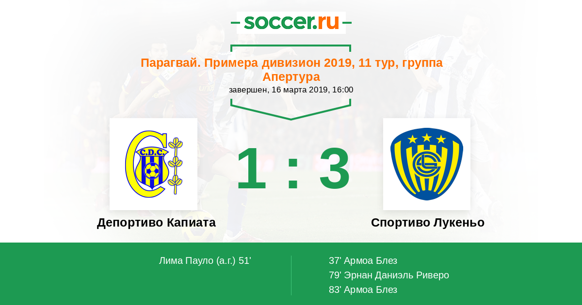 Протокол матча Депортиво Капиата против Спортиво Лукеньо