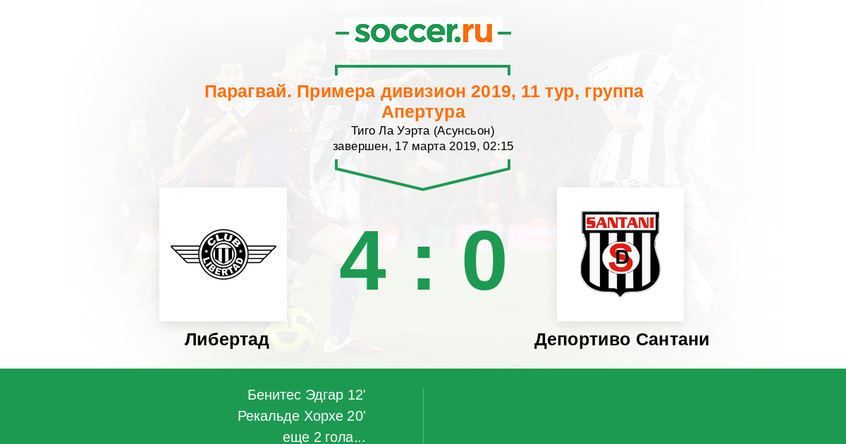 20' (2:0) Рекальде Хорхе (10) (Касерес Блас (21))