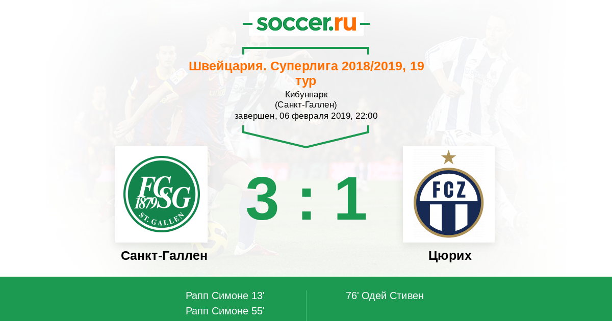 Протокол матча Санкт-Галлен против Цюрих