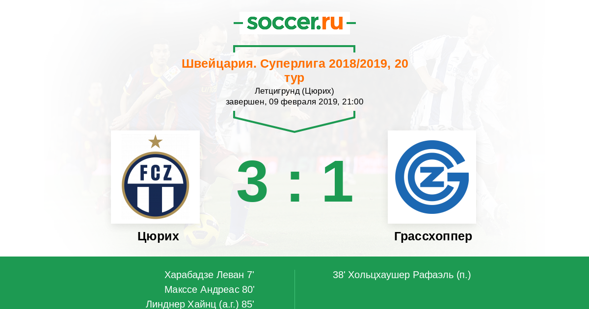 Протокол матча Цюрих против Грассхоппер