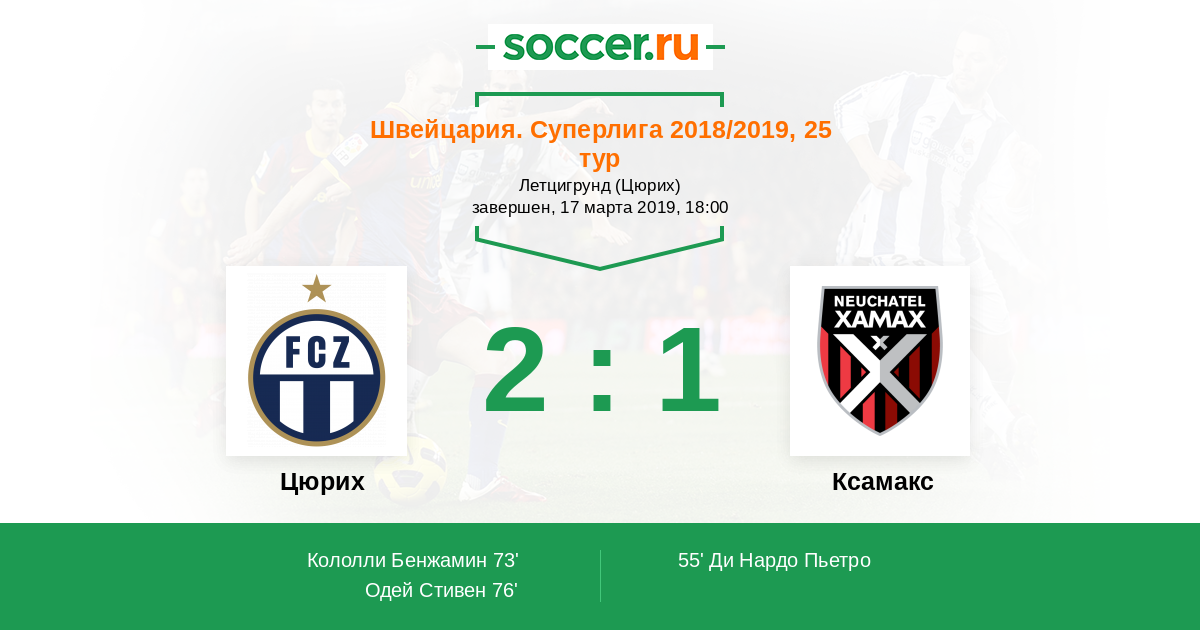 Протокол матча Цюрих против Ксамакс