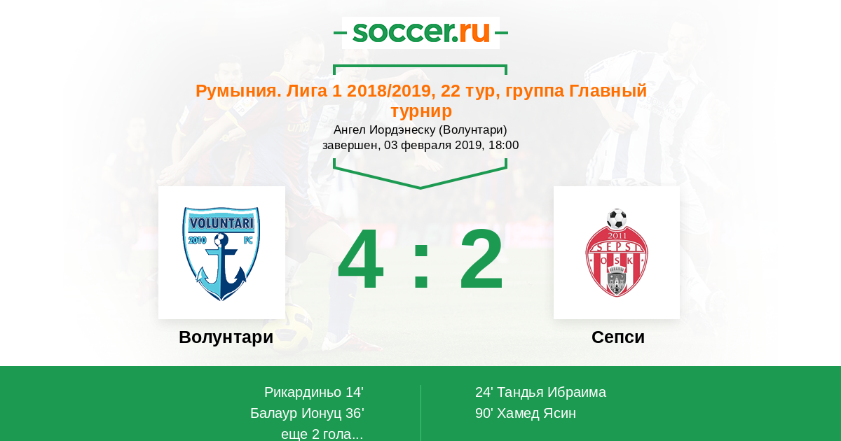 77' (4:1) Тудорие Александру (10) (Рэуцэ Александру (5))