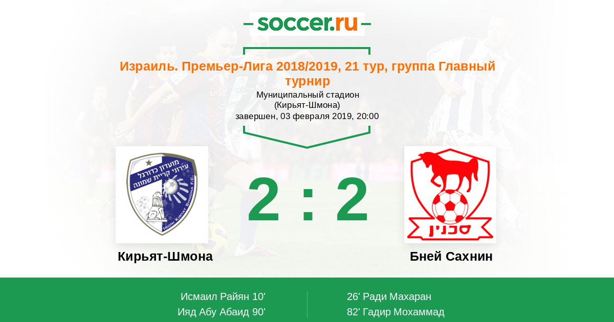 Протокол матча Кирьят-Шмона против Бней Сахнин