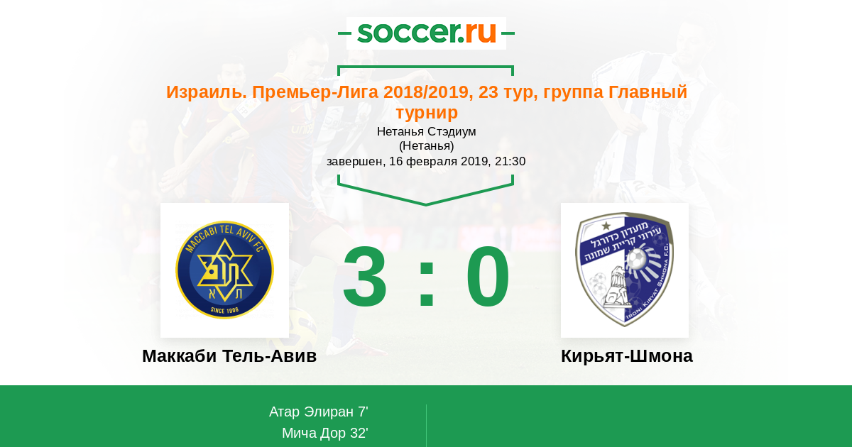 Протокол матча Маккаби Тель-Авив против Кирьят-Шмона