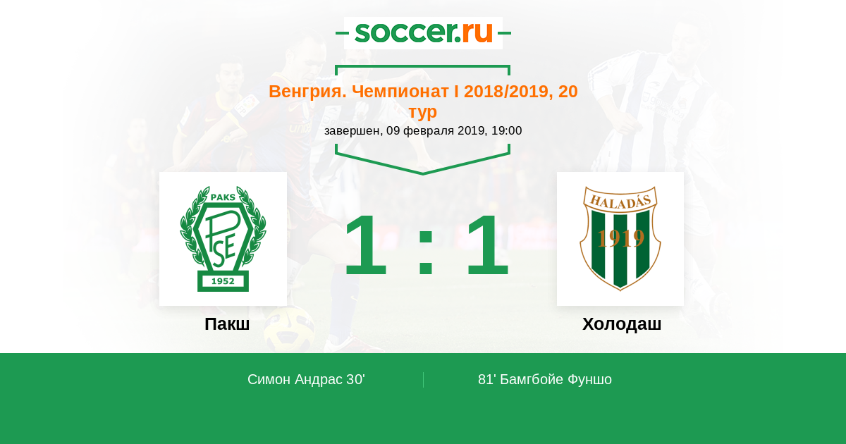 Протокол матча Пакш против Холодаш