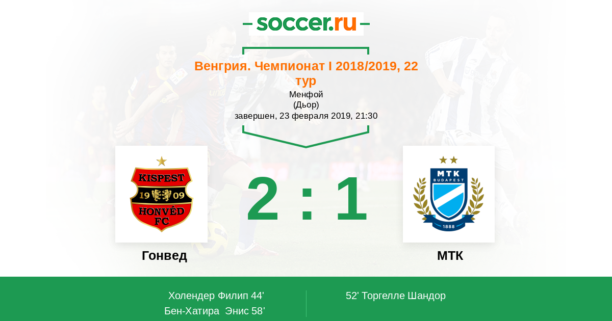 Протокол матча Гонвед против МТК