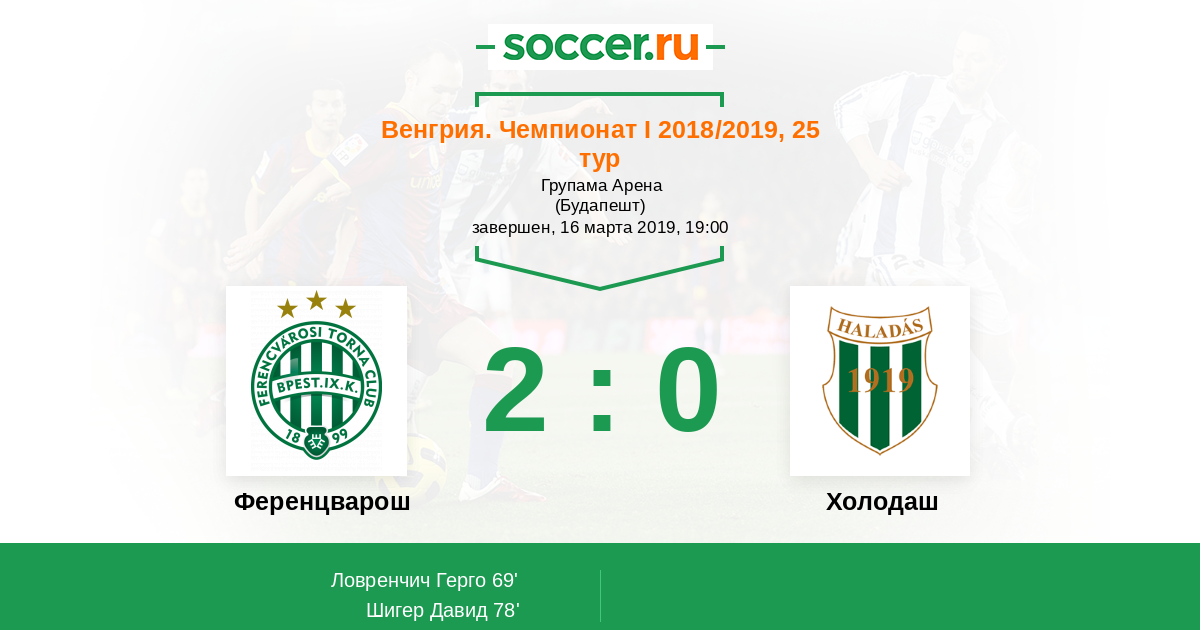 Протокол матча Ференцварош против Холодаш