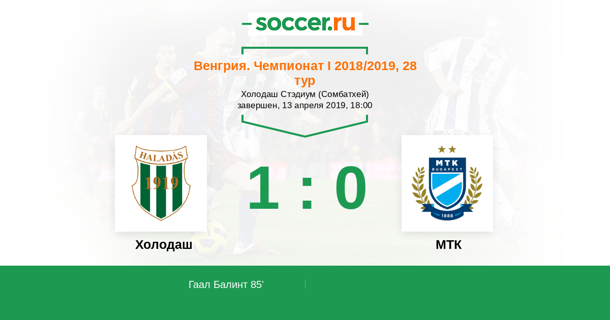 Протокол матча Холодаш против МТК