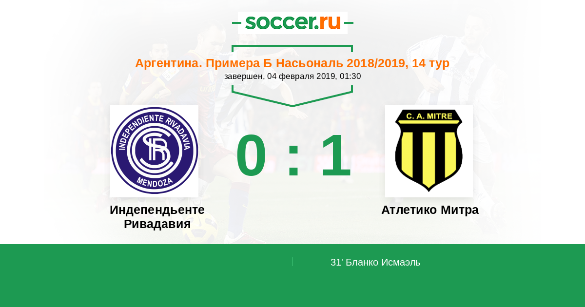 Протокол матча Индепендьенте Ривадавия против Атлетико Митра