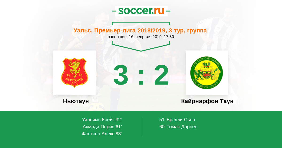 Протокол матча Ньютаун против Кайрнарфон Таун