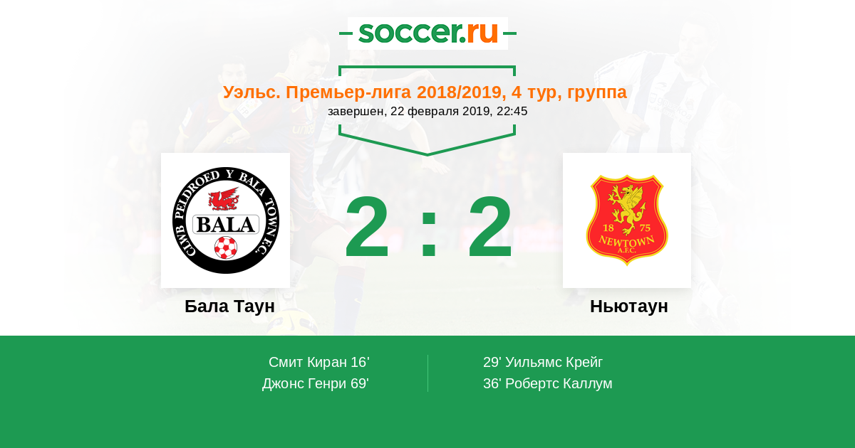 Протокол матча Бала Таун против Ньютаун