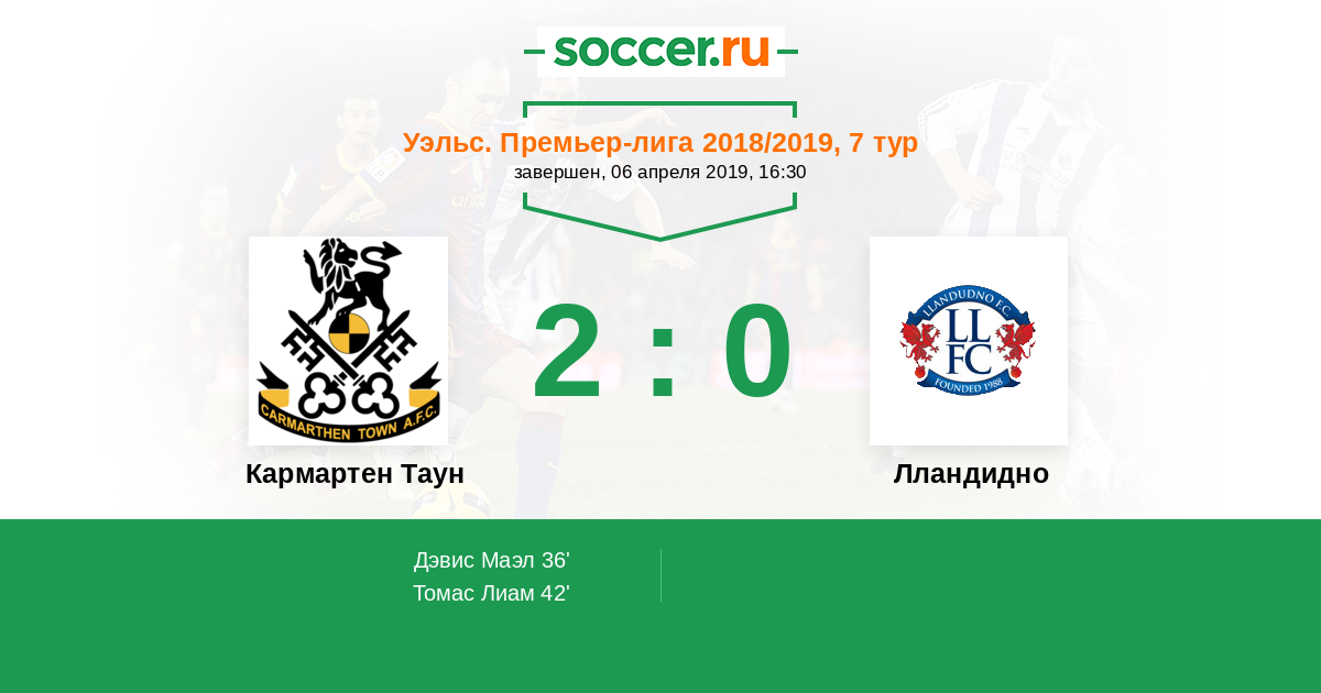 Протокол матча Кармартен Таун против Лландудно
