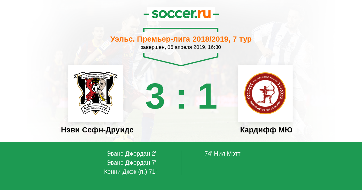 Протокол матча Нэви Сефн-Друидс против Кардифф МЮ