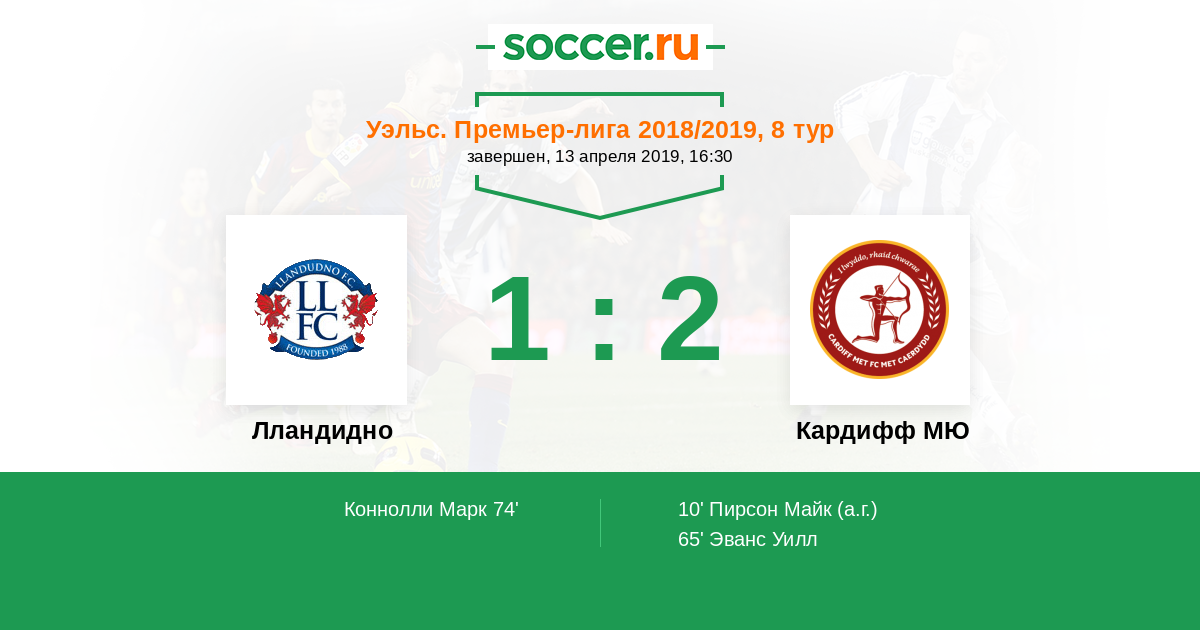 Протокол матча Лландудно против Кардифф МЮ