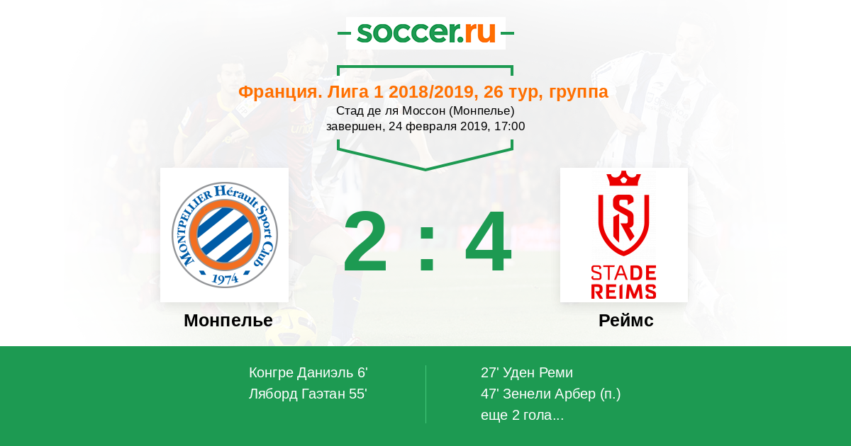 Протокол матча Монпелье против Реймс
