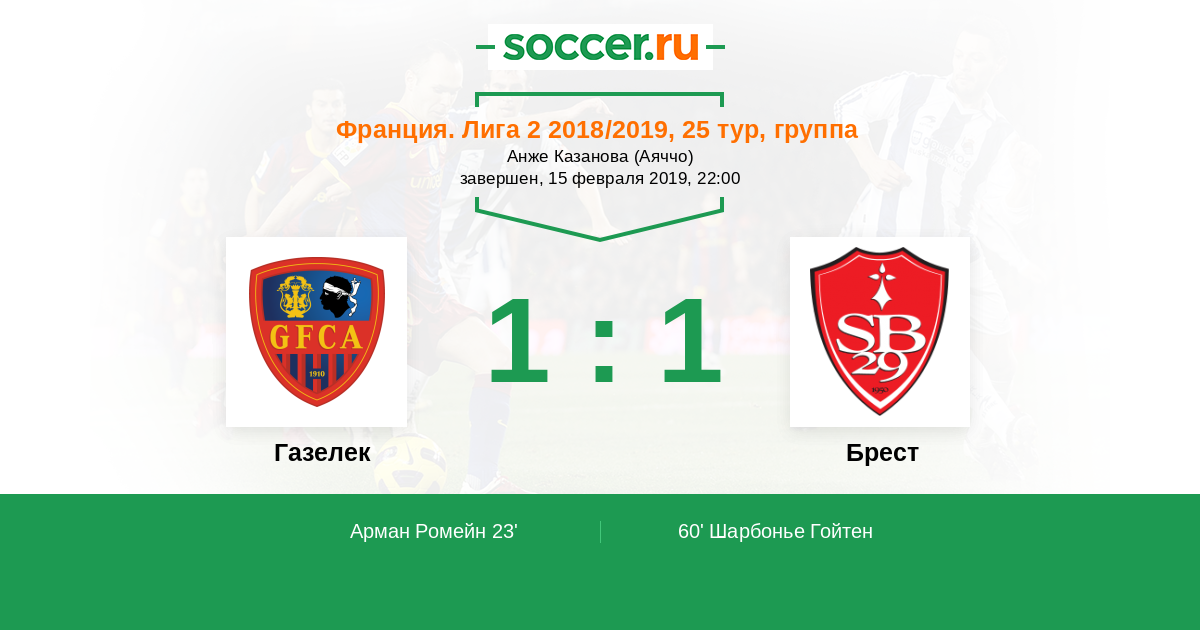 Протокол матча Газелек против Брест